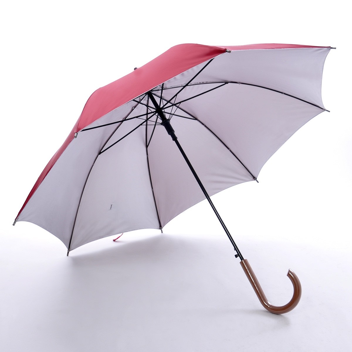 24"x 8 panels, auto open, black metal shaft, UV coated on interior panels, 190T imitation nylon fabric material, with imitation wood curve handle long umbrella