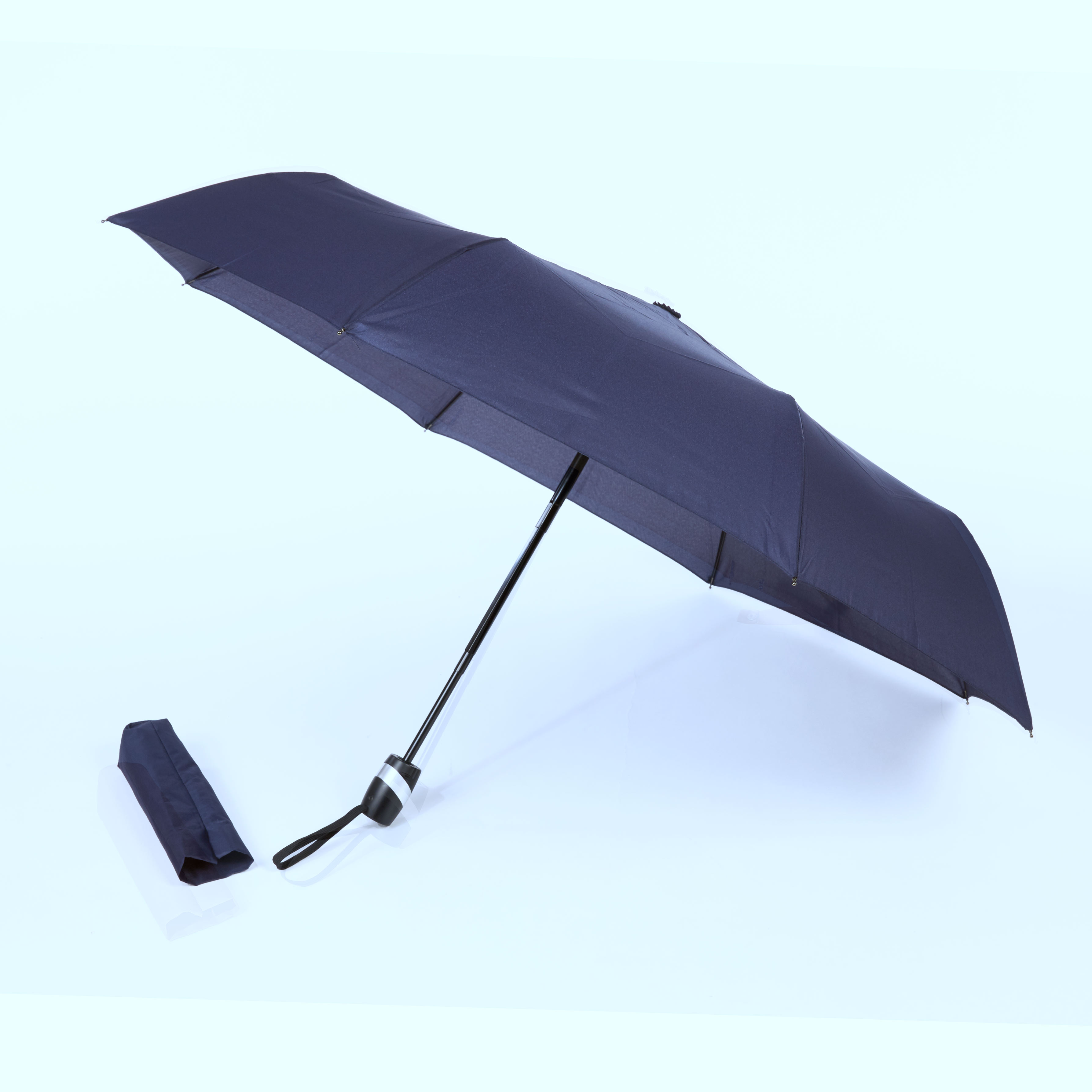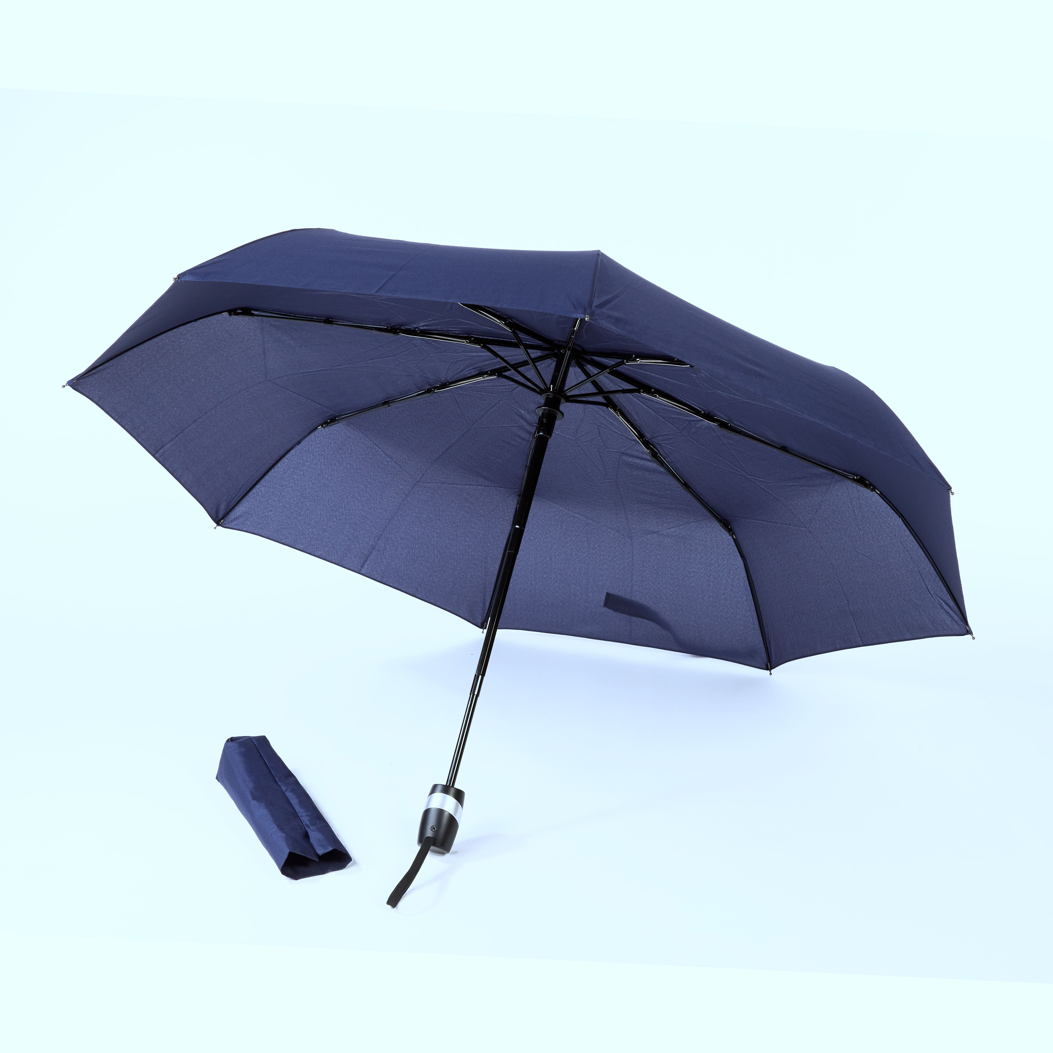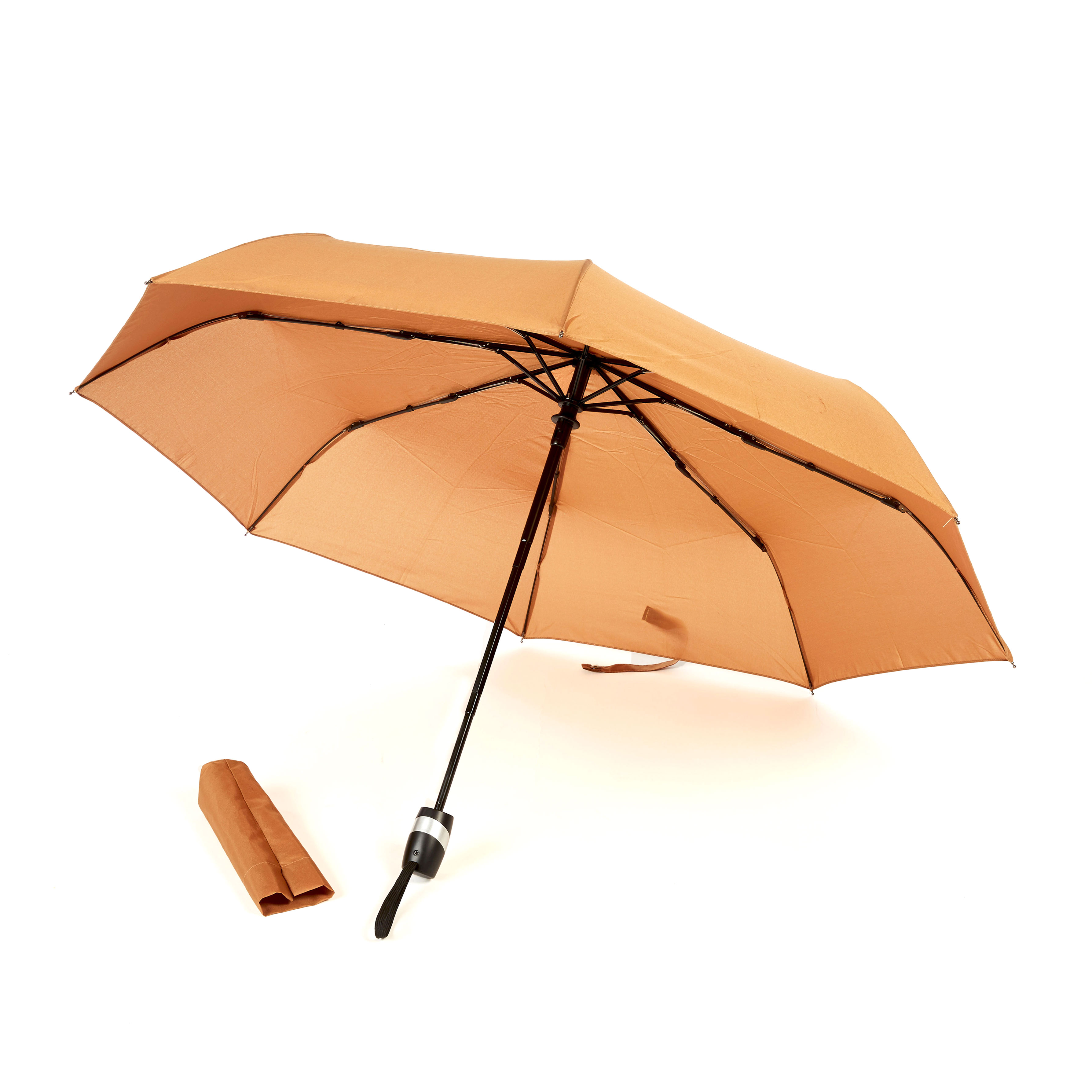 -Material: Black metal shaft, fibre ribs auto open and close, non-UV coated, solid color windproof mechanism foldable umbrella