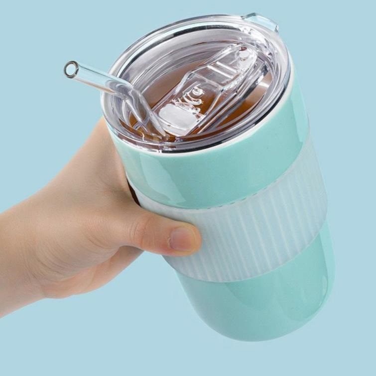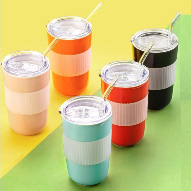 Ceramic Straw Cup with Silicone Wave Sleeve