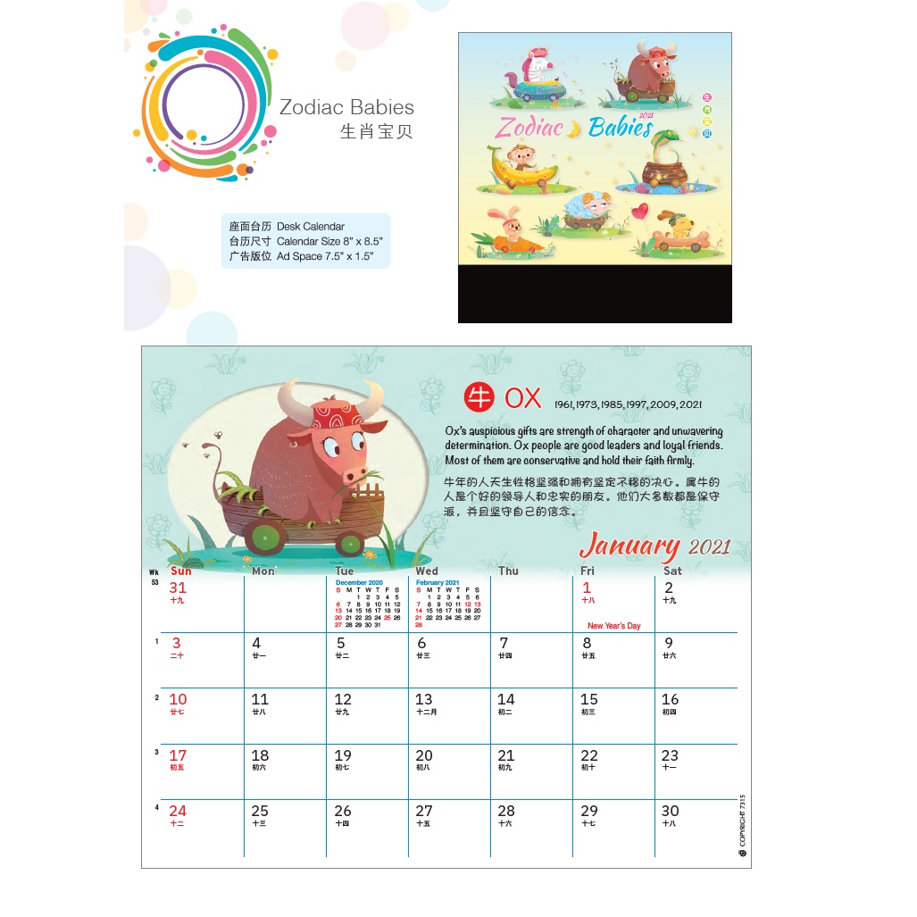 Desk Calendar with Wire-O (Zodiac Babies)