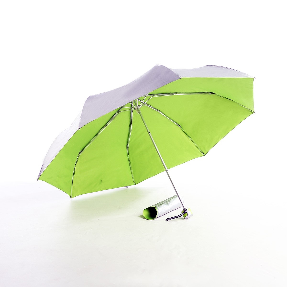 21" x 8 panels, aluminium shaft, UV protection layer coated on exterior panels, imitation nylon, lightweight, 3 fold umbrella with windproof mechanism.