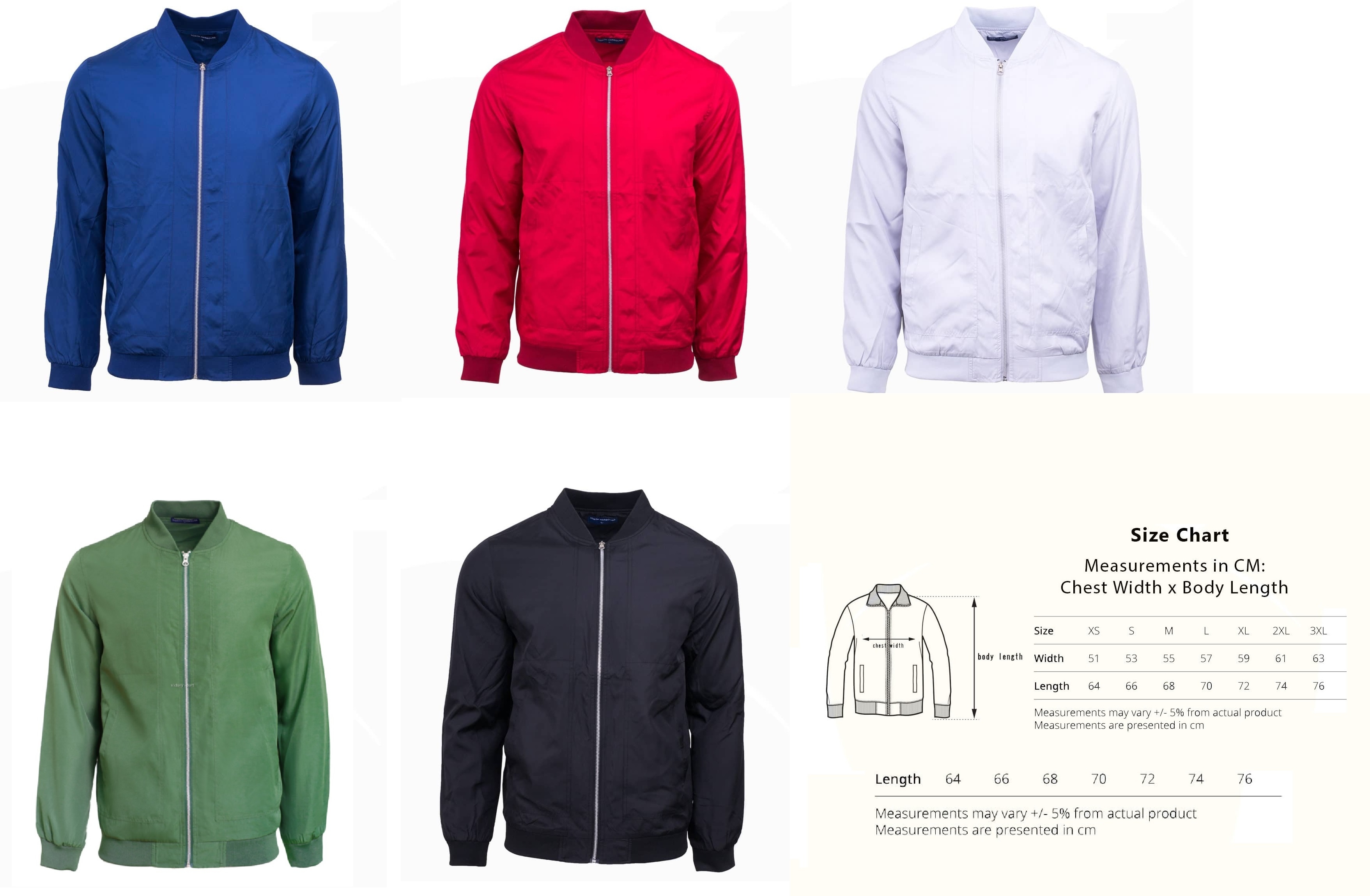 *Solid tone long sleeve*Light weight polyester pongee*Interlining with 210T polyester*Wind resistant fabric*Stand collar neckline*Elasticated cuffs and hem*2 front side pockets*1 inner pocket*Satin label*Due to the printing process and photographic lighting sources colours may vary 5-10% from the actual product*Sizes may vary +/- 5% from the actual product