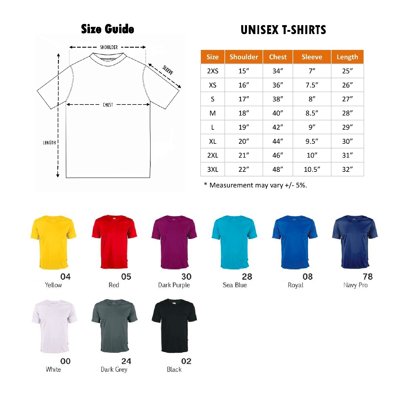 - Size : 2XS – 3XL
